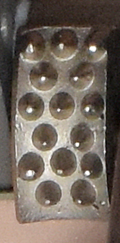 in the back plate. The top-right hole has a 12.8 mm. long, 8 mm