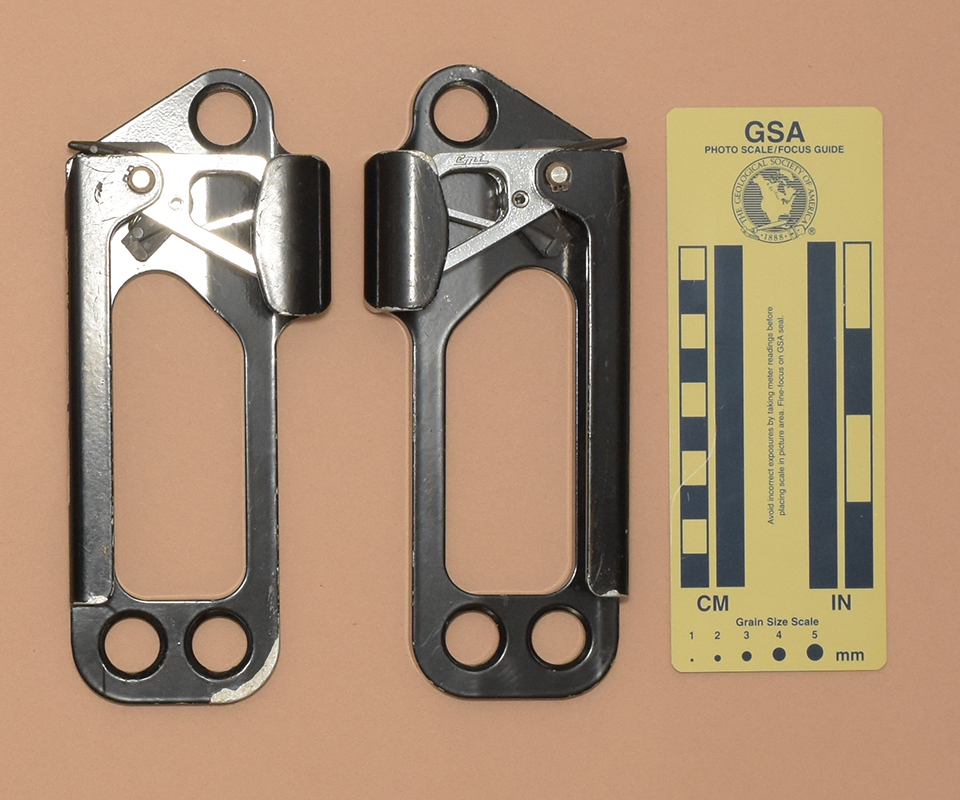 115/116 | CMI Large UltrAscender, Version D (Modified) | LH & RH, modified grip, extruded frame, round top & 2 round bottom holes, hybrid cam /w straight teeth, metal safety in frame | Inner Mountain Outfitters, 2008 Modified by Gary Storrick, 2008 |