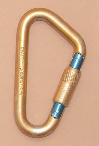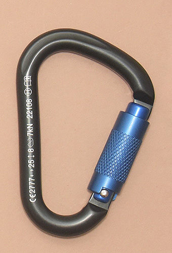 I need a carabiner, and another self-appointed Safety Nazi hands me an auto-locker. The sleeve will not turn to the left. I lift the sleeve before it will turn. I turn the sleeve a quarter turn to the left. Moving a lever inside the carabiner downward, I open the gate, clip the carabiner where I need it, and let go. The automatic locking “safety” feature fails because of mud. Wisely, I do not to trust unreliable false “safety” gadgets, so I close and lock the gate myself.