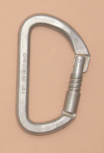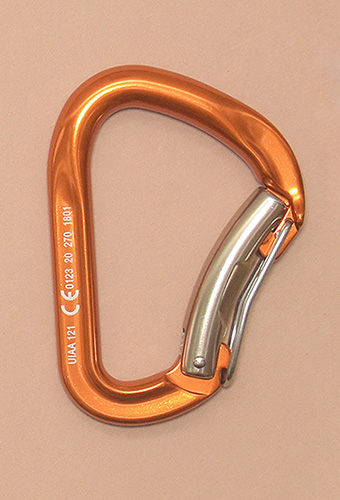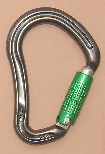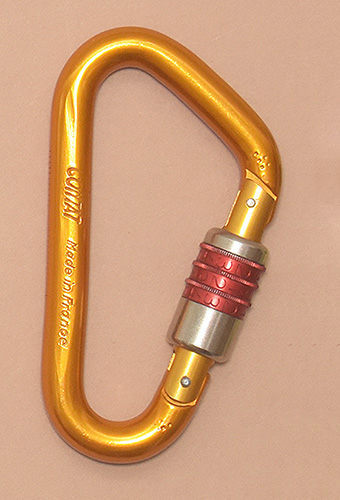 I need a locking carabiner, and a stranger hands me one. I lift the sleeve against spring pressure, turn it a half turn left, let the spring push the sleeve down to the unlocked position, open the gate, clip the carabiner where I need it, lift the sleeve, turn it a half turn right, and finally after all the effort, let the spring push the sleeve down to the locked position. Simple, only eight steps that anyone can memorize.