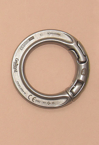 I need a secure carabiner and my friend hands me one. Damn! This thing has two gates. I open the outer gate with my thumb and use the object that I’m clipping into to force the inner gate open. This lets me put the carabiner where I need it.