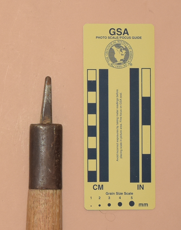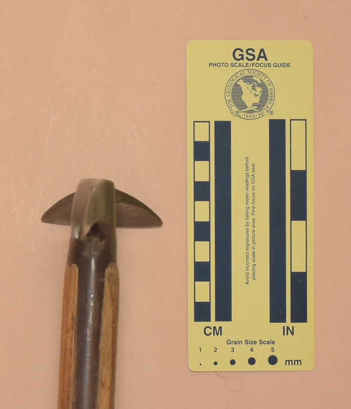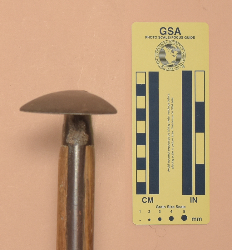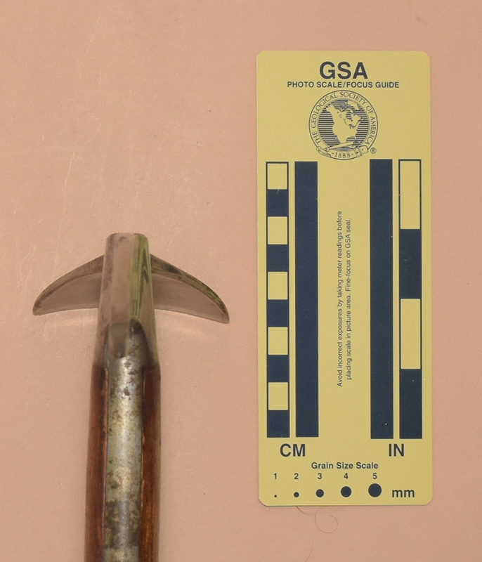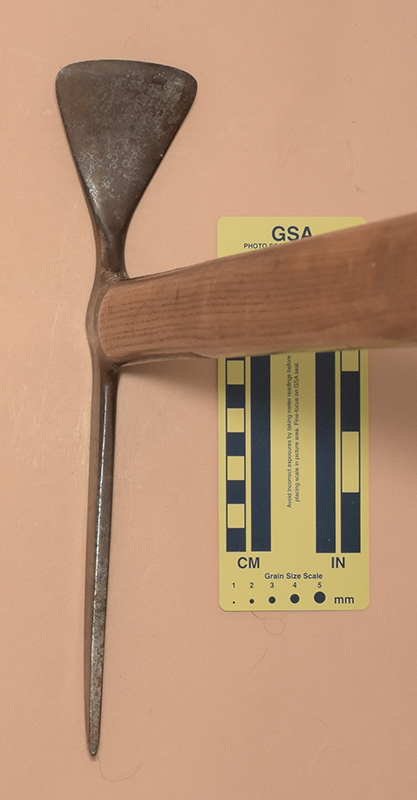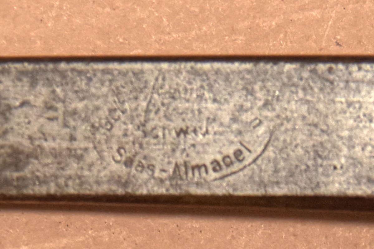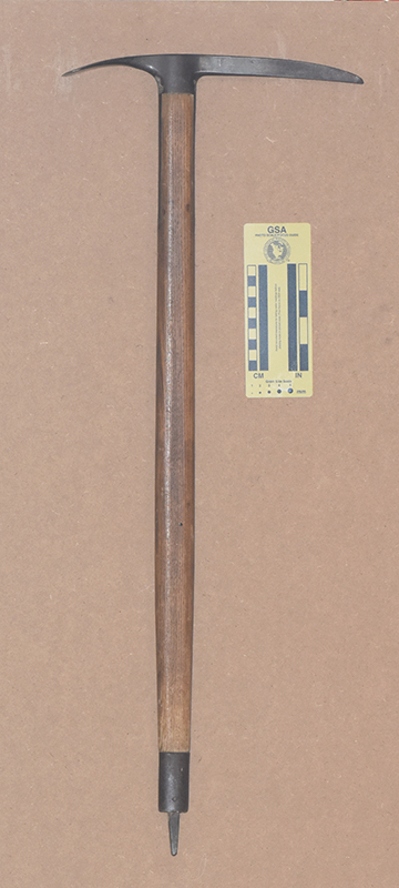 The Andenmatten brothers Florinus and Severin of Saas Almagel, Switzerland started making ice axes in 1918. The first logo had GEB.ANDENMATTEN, SCHWEIZ, and SAAS-ALMAGEL in three rows of capital letters. In 1930 the inscription changed to use lower-case letters. Some axes also had a mountain silhoutte with MARKE MISCHABEL stamped on the other side. Severin's son Ernest continued ice axe production into the early 1970s.