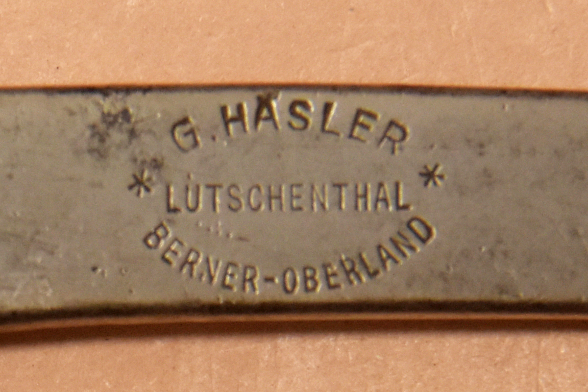 Gotlieb Häsler made ice axes in Lütschenthal (near the foot of the Grinderwald), Berner-Oerland region, Switzerland. He was active making throughout the 1920s and 1930s, and apparently ended his production in the early 1940s.