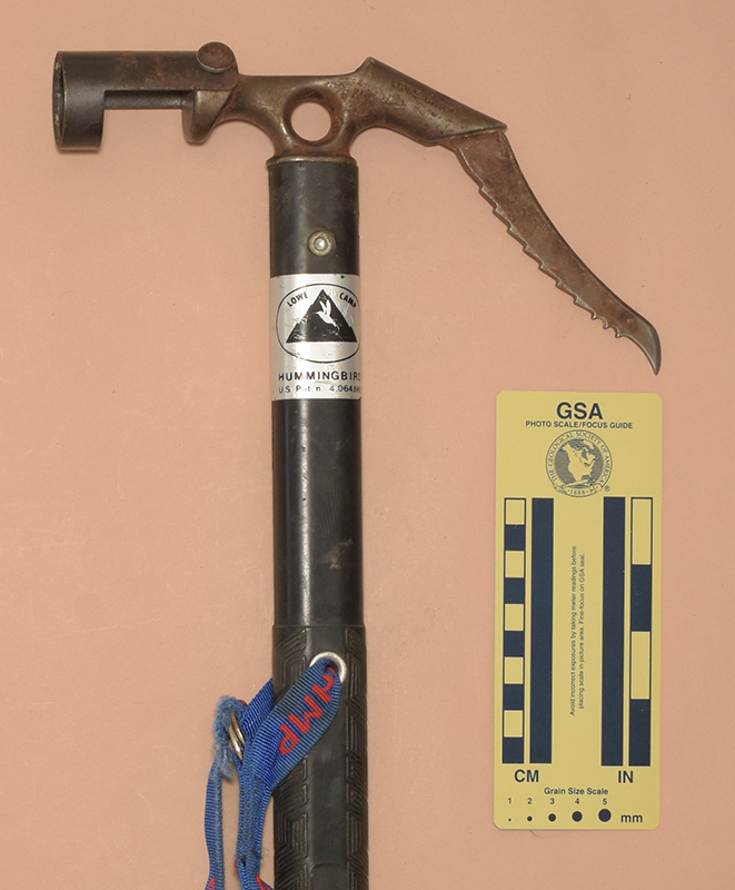 Developed in 1973, the Hummingbird was the first modular ice axe. Greg and Michael Lowe filed in 1976 and received U. S. Patent #4,064,644 for the Hummingbird in 1977.