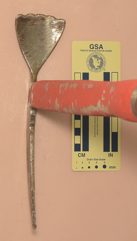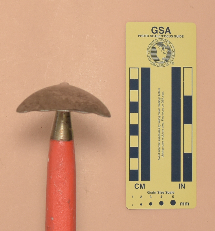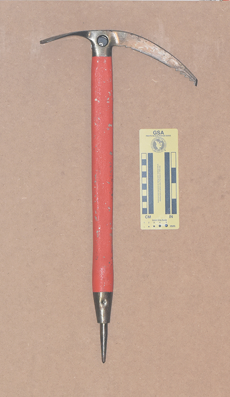 Curved alpine pick with a negative-clearance chisel tip and with 5 ventral teeth near the tip and 2 more near the shaft.