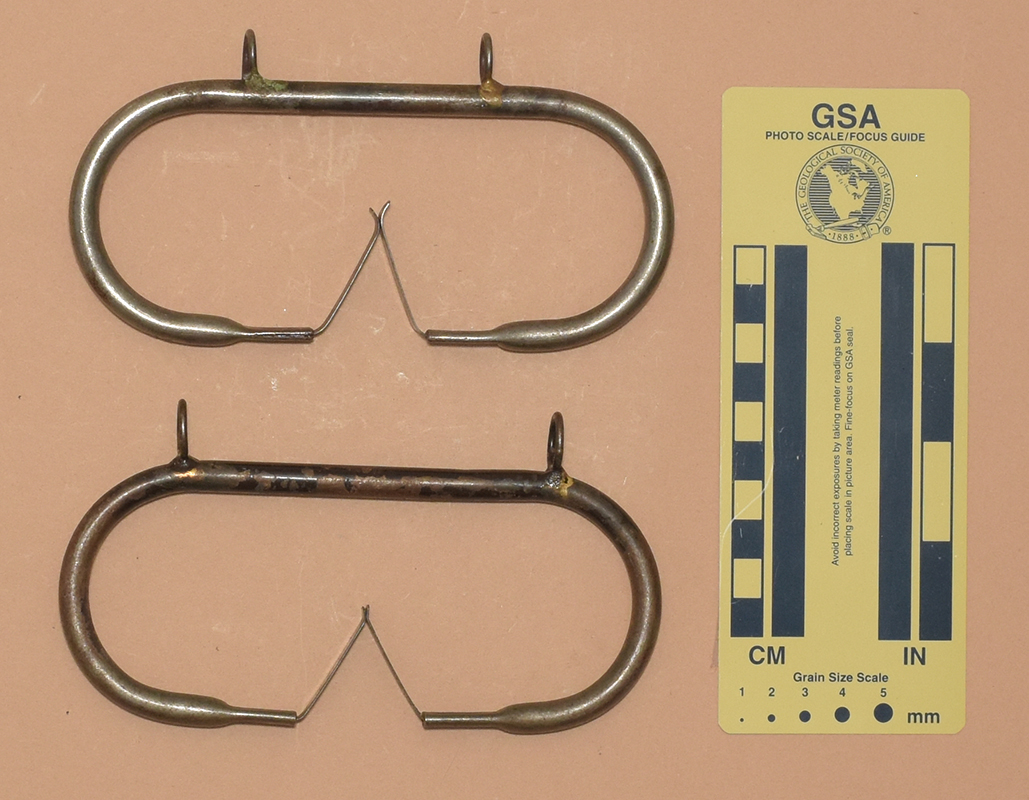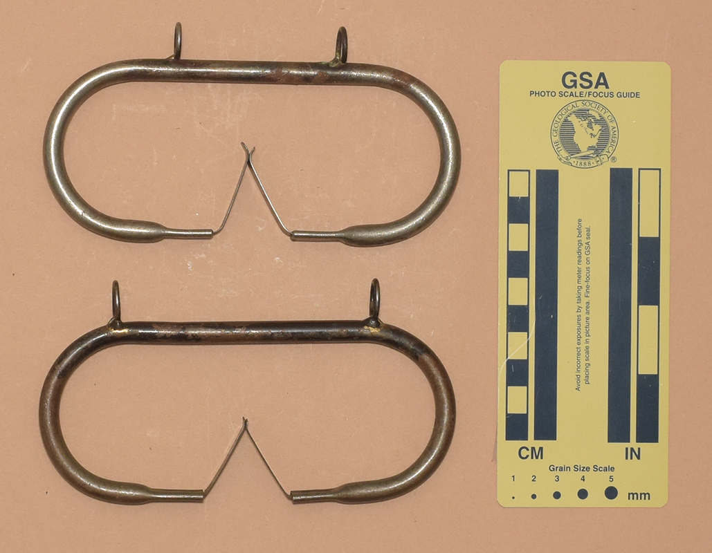 "Hakenschani" combines "Haken" (for piton) with a local Bavarian-Austrian slang word meaning something like a servant or helper. In the broader world, these are more commonly known as "Anneau Rectangulaire" meaning "rectangular ring" in French - undoubtedly due to their sale in some major French catalogs and outfitters. Some catalogs even sold the triangular version as "Anneau Rectangulaire" despite the obvious misnomer.