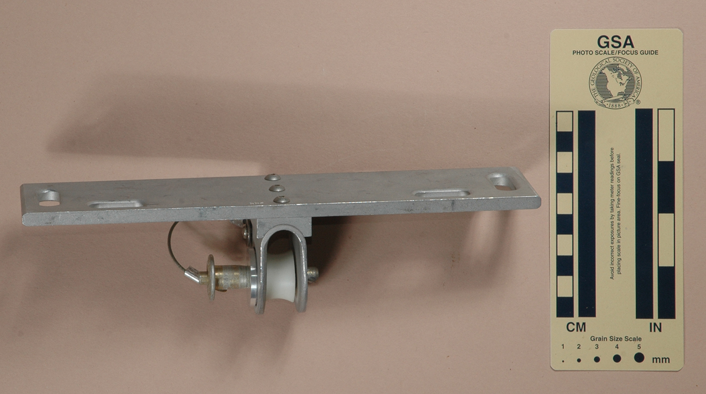 The roller shell is stamped "GIBBS" with a double underline and "®" on each side. The quick release pin is stamped with "AVIBANK PUSH" and "55207."Ron Simmons made the shells for his first rollers out of Gibbs Ascender shells. After deciding that he liked his idea, he started making his own shells. This is one of the early ones that still shows the Gibbs markings. Unlike later models that he put into production, this one is tall enough to admit 2" webbing. I like that since it allows me to slip it onto a simple harness without having to sew the roller in place with 1" webbing.