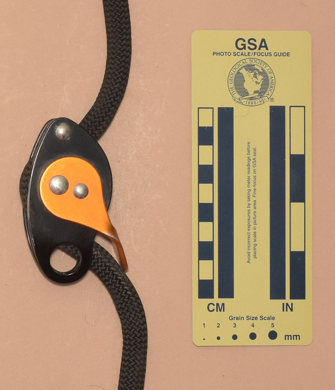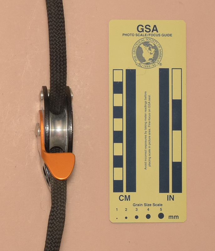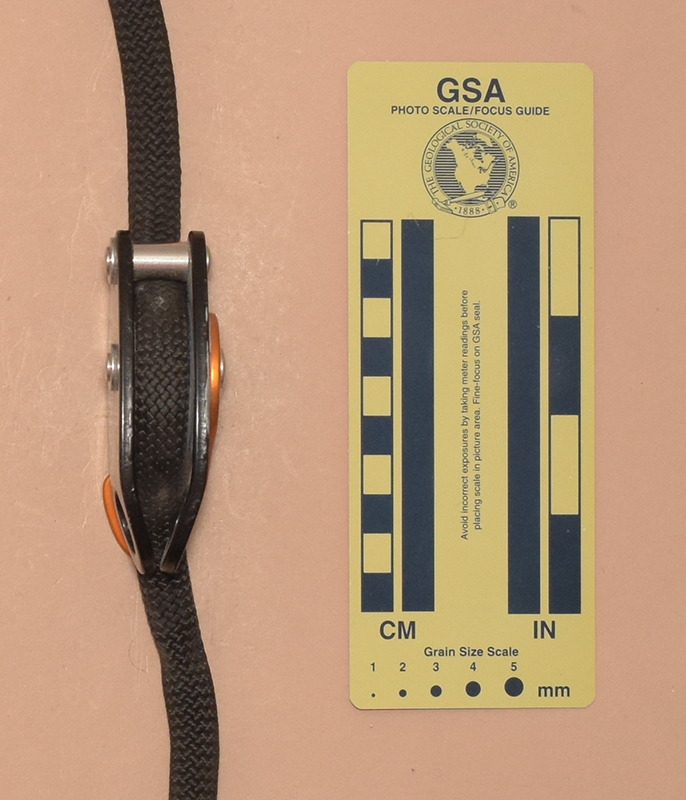 The Trimmer consists of two 4 mm. aluminum alloy plates riveted together with a with a cam assembly sandwiched between the plates. One end of each plate is bent inward, where a 15.7 mm. diameter hole in each plate align to form an attachment eye. The plates are held together by two shoulder rivets. The ipper one serves as a guide bollard and the lower as a cam axle.