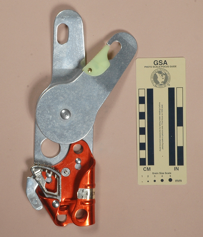 This version is 279 mm. tall, 80 mm. wide, 36 mm. thick, and weighs 512. The primary change from the earlier versions is that the ascender is now riveted to the pulley plate.