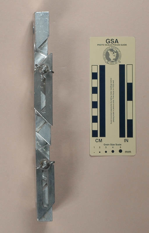 My Storrick Whaletail is 280 mm. tall, 72 mm. wide, 25 mm. thick, and weighs 710 g. It is milled from 6061-T6 aluminum alloy. It has five slots forming six bars. Two milled aluminum safety gates attach by bolts fitted through the whaletail at the second and fifth bars. Each gate is secured by a washer and a wing nut. There is a 20.7 mm. diameter eye at each end.