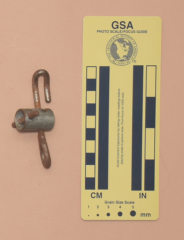 The tube is 1-5/8 inch 304 stainless steel tubing. The inner end has holes through which pass an 11 mm. rod with an eye at the lower end and a horizontal hook at the upper end, with the opening inward. A vertical rope retention rod passes through a hole to the outer end. Both rods are welded in place at their top hole penetrations.