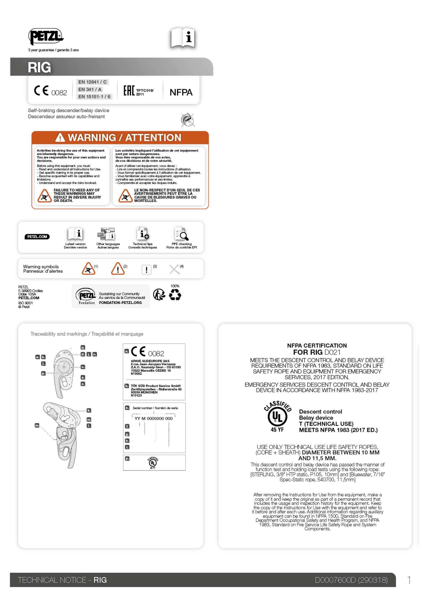 I acquired my Petzl Rig, Version A from On Rope 1 in 2010.