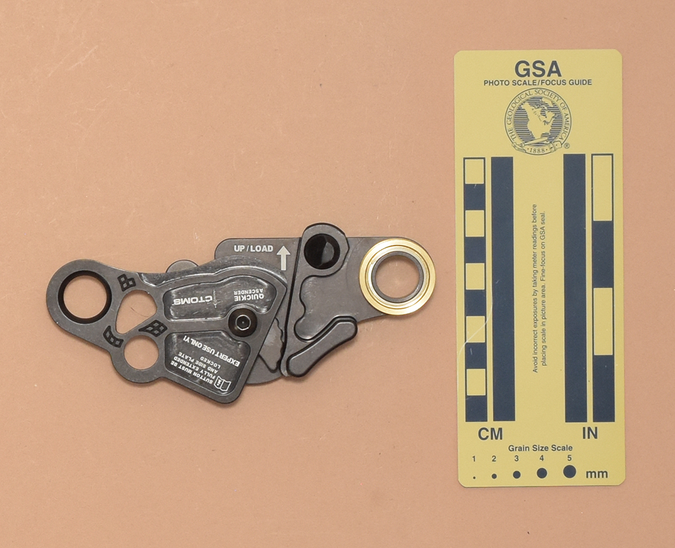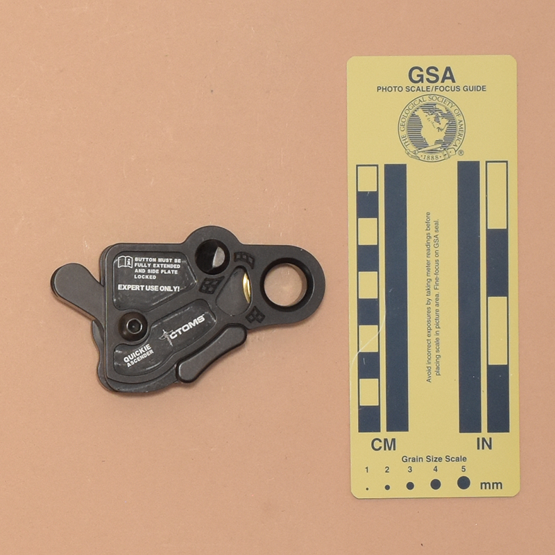 "Rock made them for us, and a few for himself he marketed as a TactiGrab, though I don’t think he ever advertised them. We called it the Quickie Ascender to go with the Quickie Descender. Rock and Kirk would apply and receive a patent for it.