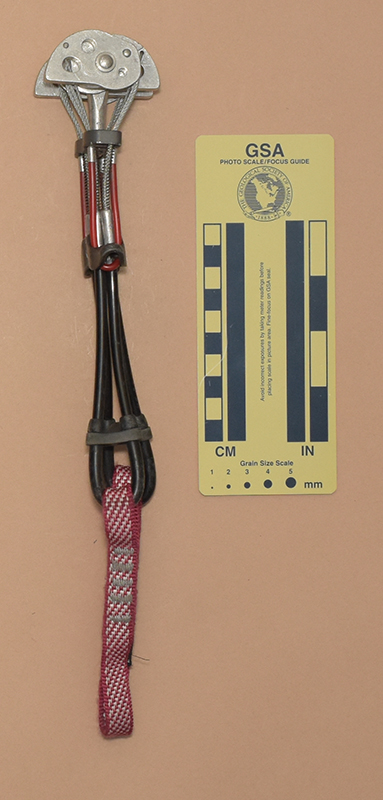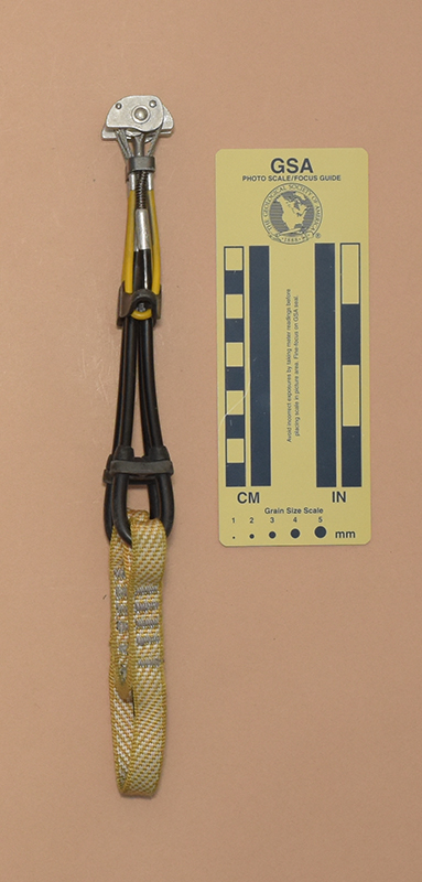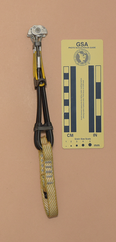 - Tag sewn to sling has "CE," "0082," " a book–with–an–"i" icon, "0.80," and "9 kN" on one side and the Totem logo with "Totem" on the other side.