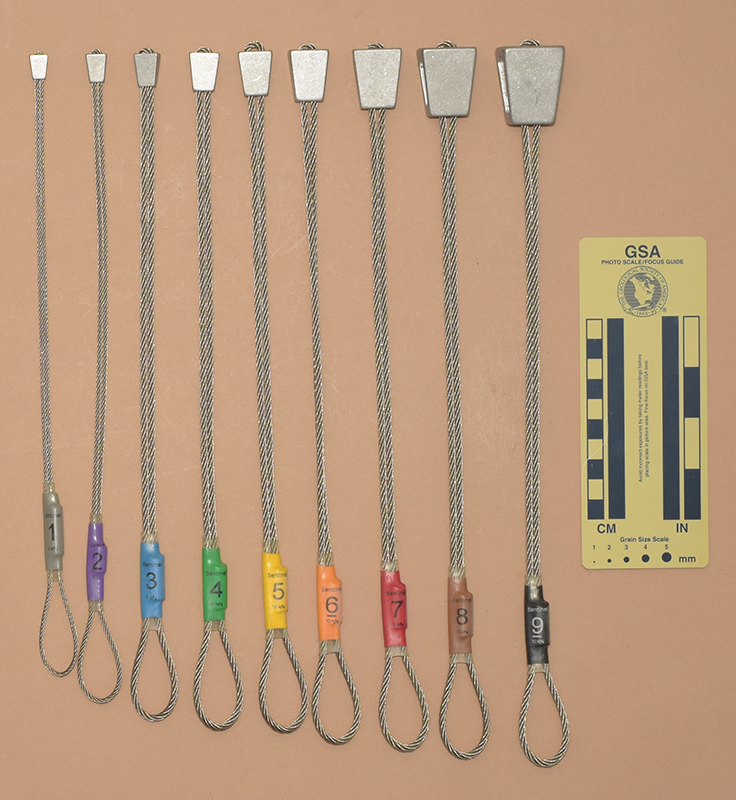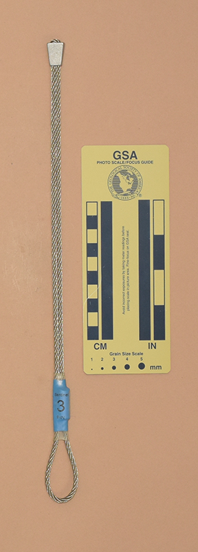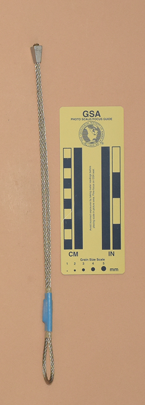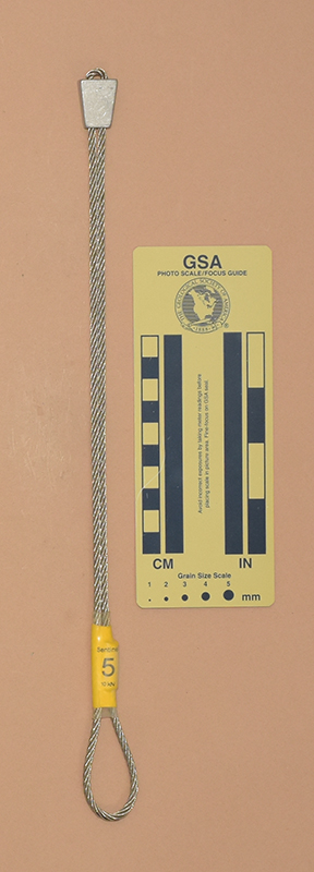 BlueColored heat shrink is printed with "Sentinel," "1," and "9 kN.". - Mild end taper to accommodate flaring cracks.