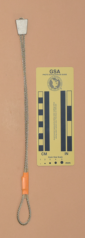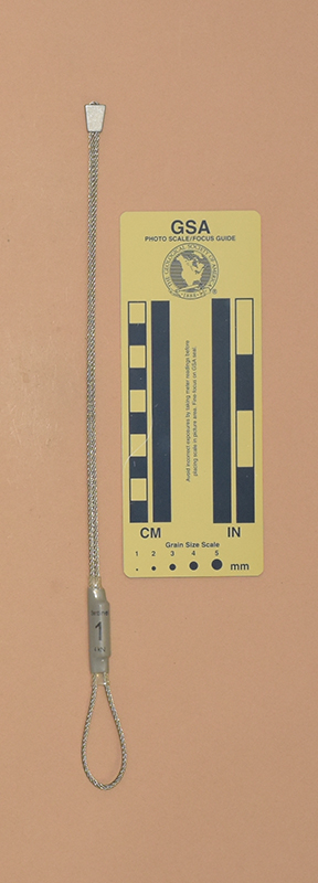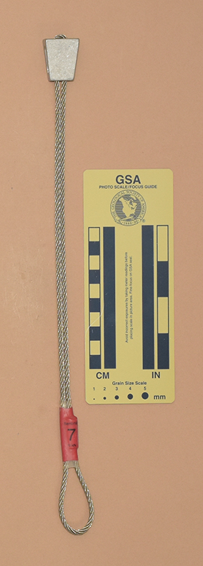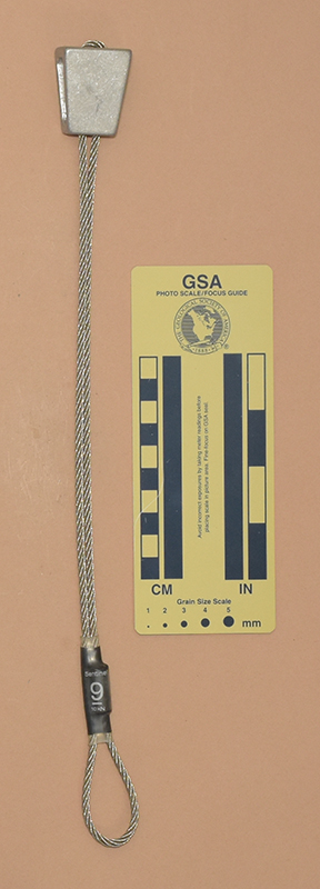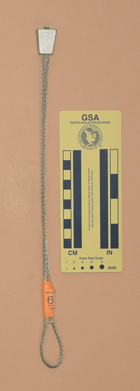 OrangeColored heat shrink is printed with "Sentinel," "1," and "910 kN.". - Mild end taper to accommodate flaring cracks.