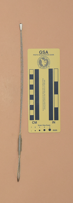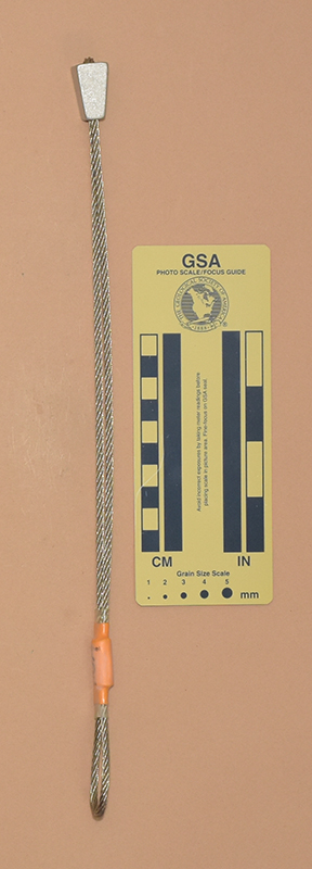 BrownColored heat shrink is printed with "Sentinel," "1," and "910 kN.". - Mild end taper to accommodate flaring cracks.
