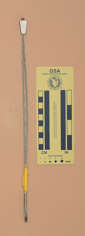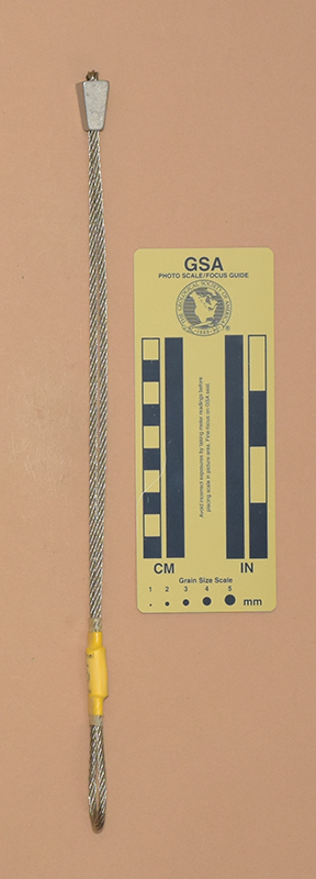 YellowColored heat shrink is printed with "Sentinel," "1," and "910 kN.". - Mild end taper to accommodate flaring cracks.