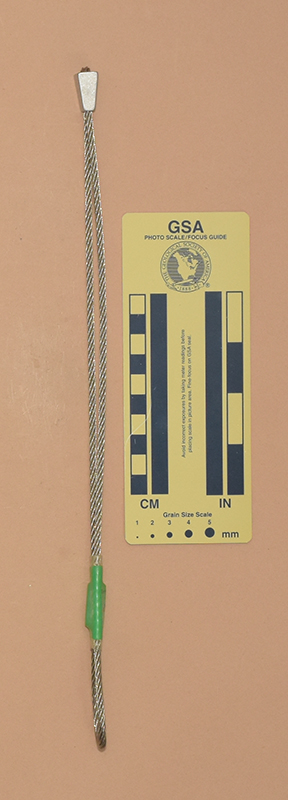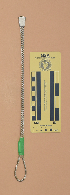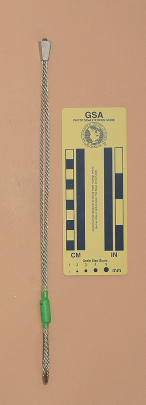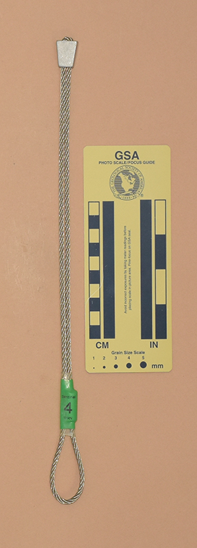 GreenColored heat shrink is printed with "Sentinel," "1," and "910 kN.". - Mild end taper to accommodate flaring cracks.