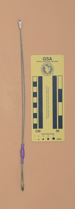 PurpleColored heat shrink is printed with "Sentinel," "1," and "5 kN.". - Mild end taper to accommodate flaring cracks.