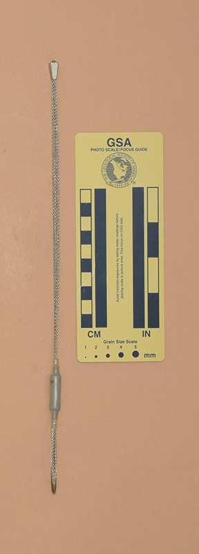 GrayColored heat shrink is printed with "Sentinel," "1," and "4 kN.". - Mild end taper to accommodate flaring cracks.
