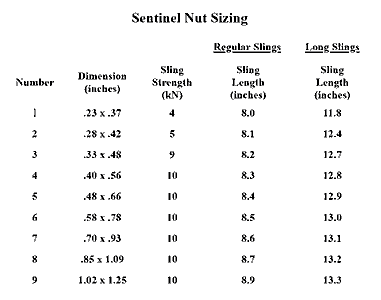 Sentinel Nuts are easier to remove than curved or offset nuts, and Frost claimed that they were more secure. The nearly strait-sided taper also makes determining the quality of the placement easier, an especially nice feature for beginners. Frost claimed that the strait-sided Sentinel Nuts were more secure than curved nuts. I believe that this depends on the specific placement, and that ths choice between straight- and curved-sided nuts should consider the characteristics of the rock where they will be used.