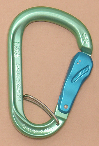 I need a locking carabiner, and a stranger hands me one. I lift the sleeve against spring pressure, turn it a half turn left, let the spring push the sleeve down to the unlocked position, open the gate, clip the carabiner where I need it, lift the sleeve, turn it a half turn right, and finally after all the effort, let the spring push the sleeve down to the locked position. Simple, only eight steps that anyone can memorize.