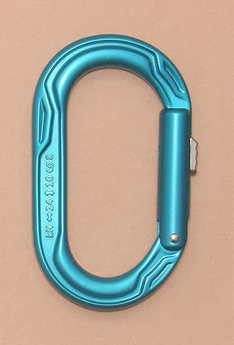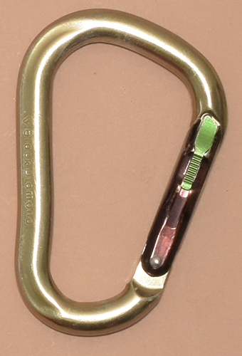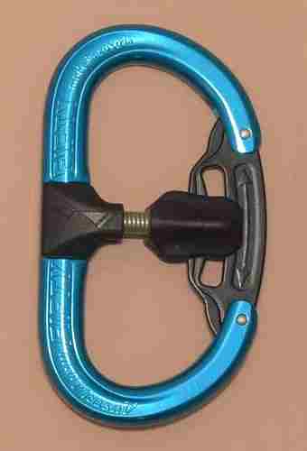 I need a secure carabiner and my friend hands me one. Damn! This thing has two gates. I open the outer gate with my thumb and use the object that I am clipping into to force the inner gate open. This lets me put the carabiner where I need it.