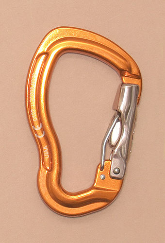 I need a carabiner, and another self-appointed Safety Nazi hands me an auto-locker. The sleeve will not turn to the left. I lift the sleeve before it will turn. I turn the sleeve a quarter turn to the left. Moving a lever inside the carabiner downward, I open the gate, clip the carabiner where I need it, and let go. The automatic locking "safety" feature fails because of mud. Wisely, I do not to trust unreliable false "safety" gadgets, so I close and lock the gate myself.